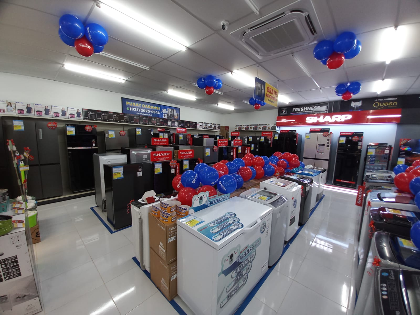 Menyediakan pilihan produk terlengkap, mulai dari TV, AC, kulkas, mesin cuci, peralatan rumah tangga, hingga alat telekomunikasi dan elektronik seperti handphone, laptop, tablet, dan berbagai aksesori lainnya.